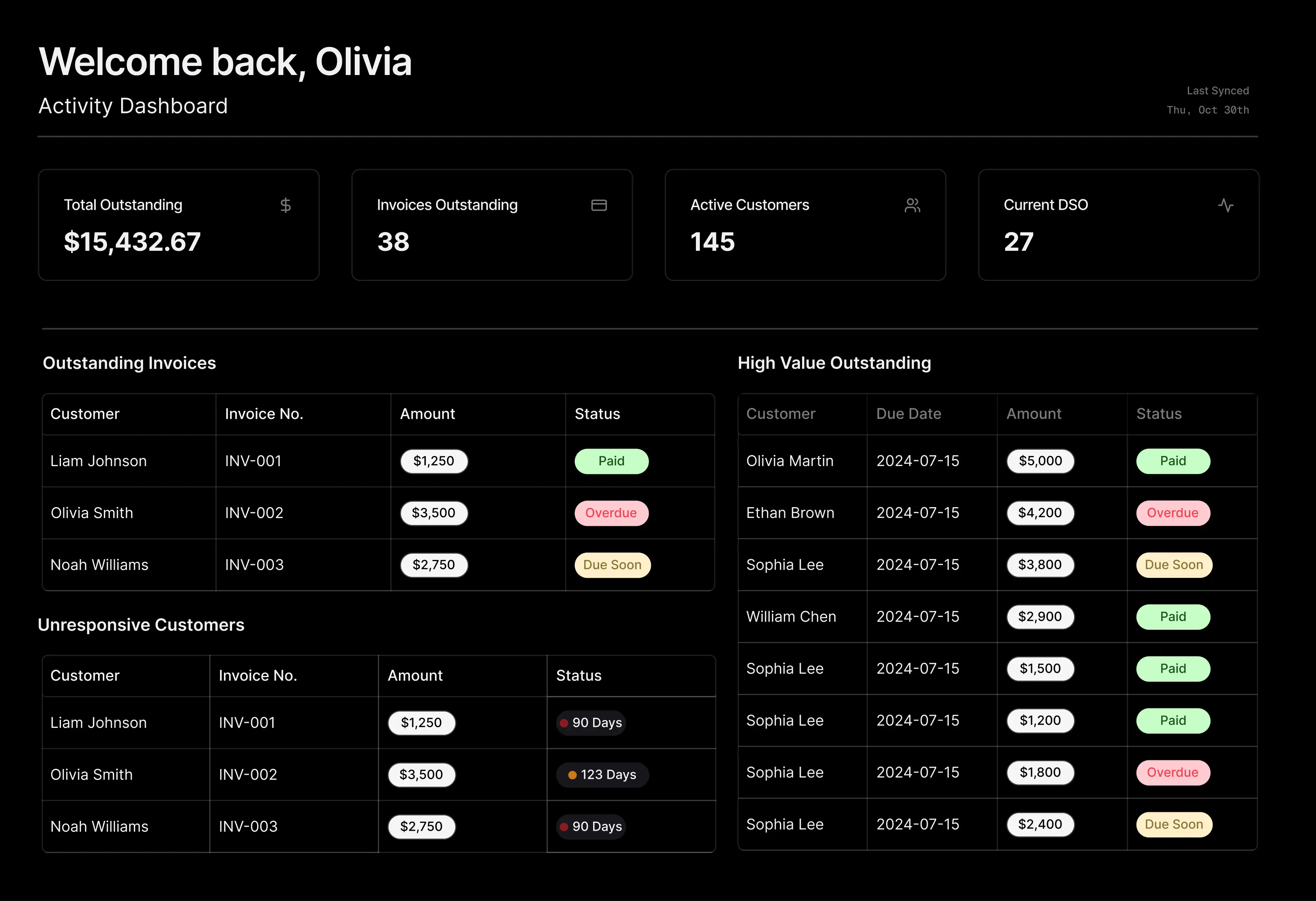 Al-powered, context-aware reminders that adapt to each client's payment behavior, predicting recovery.